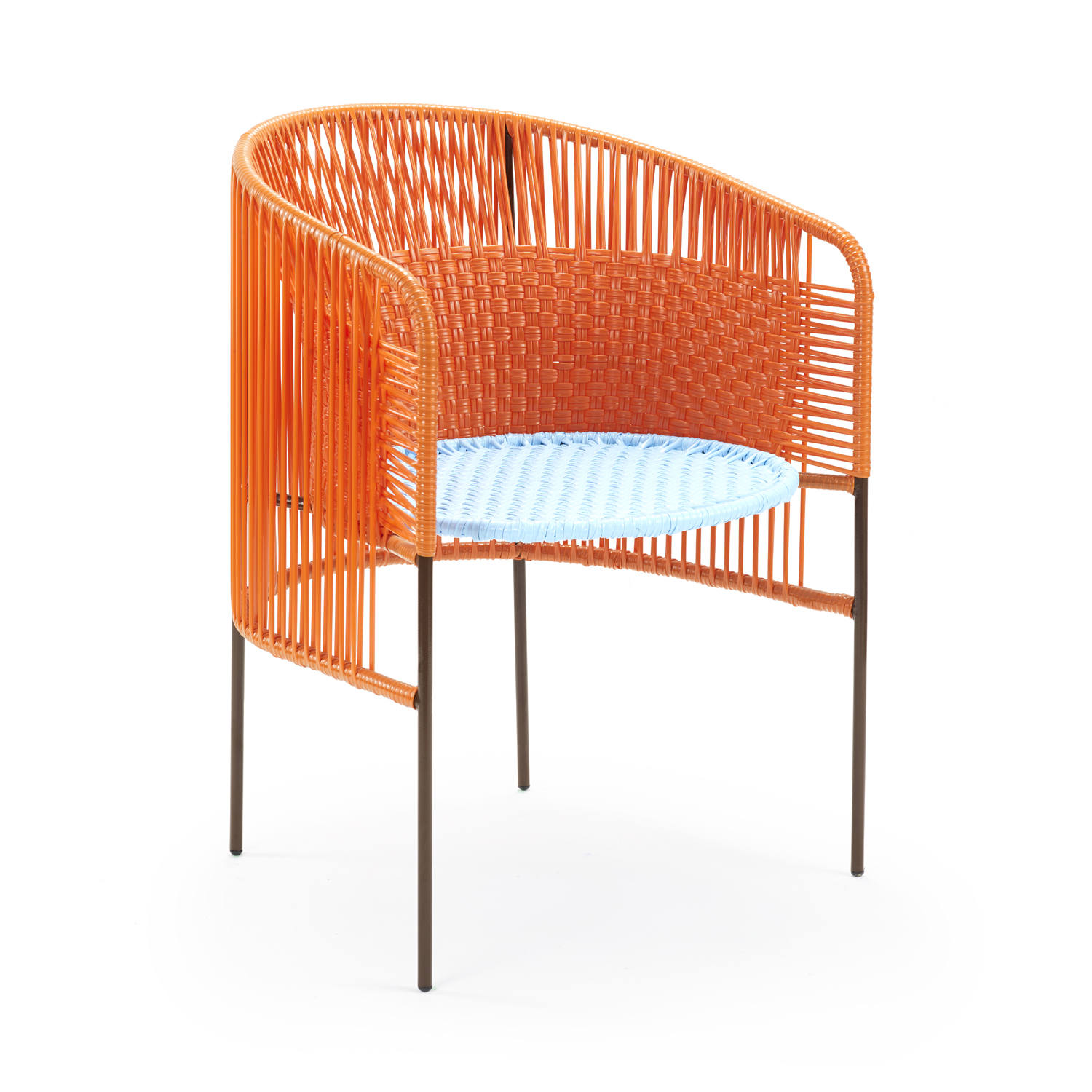 chairs from plastic string and tubular steel in »momposino« weaving