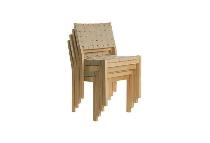 Designed by Alvar Aalto in 1929, Chair 611 was one of his first furniture pieces. Clean-lined and functional, the innovative webbed design of this chair mimics the spirit of Aalto's modern architecture. In constant production since its creation, this highly practical chair is suitable for almost any surrounding. Made in Finland by Artek, this chair stacks up to 8 chairs for easy storage and ships assembled.