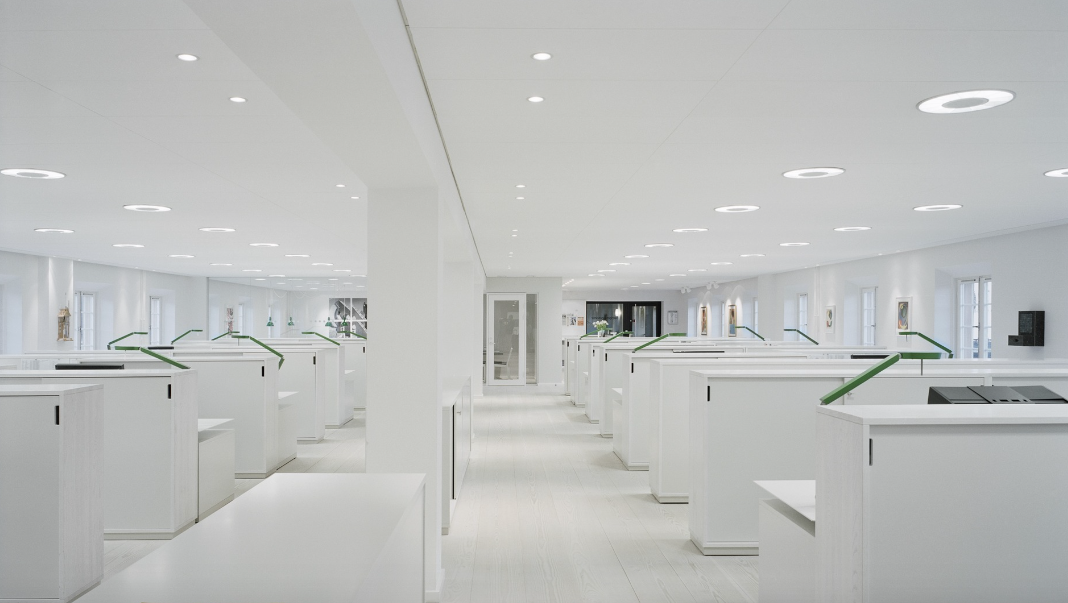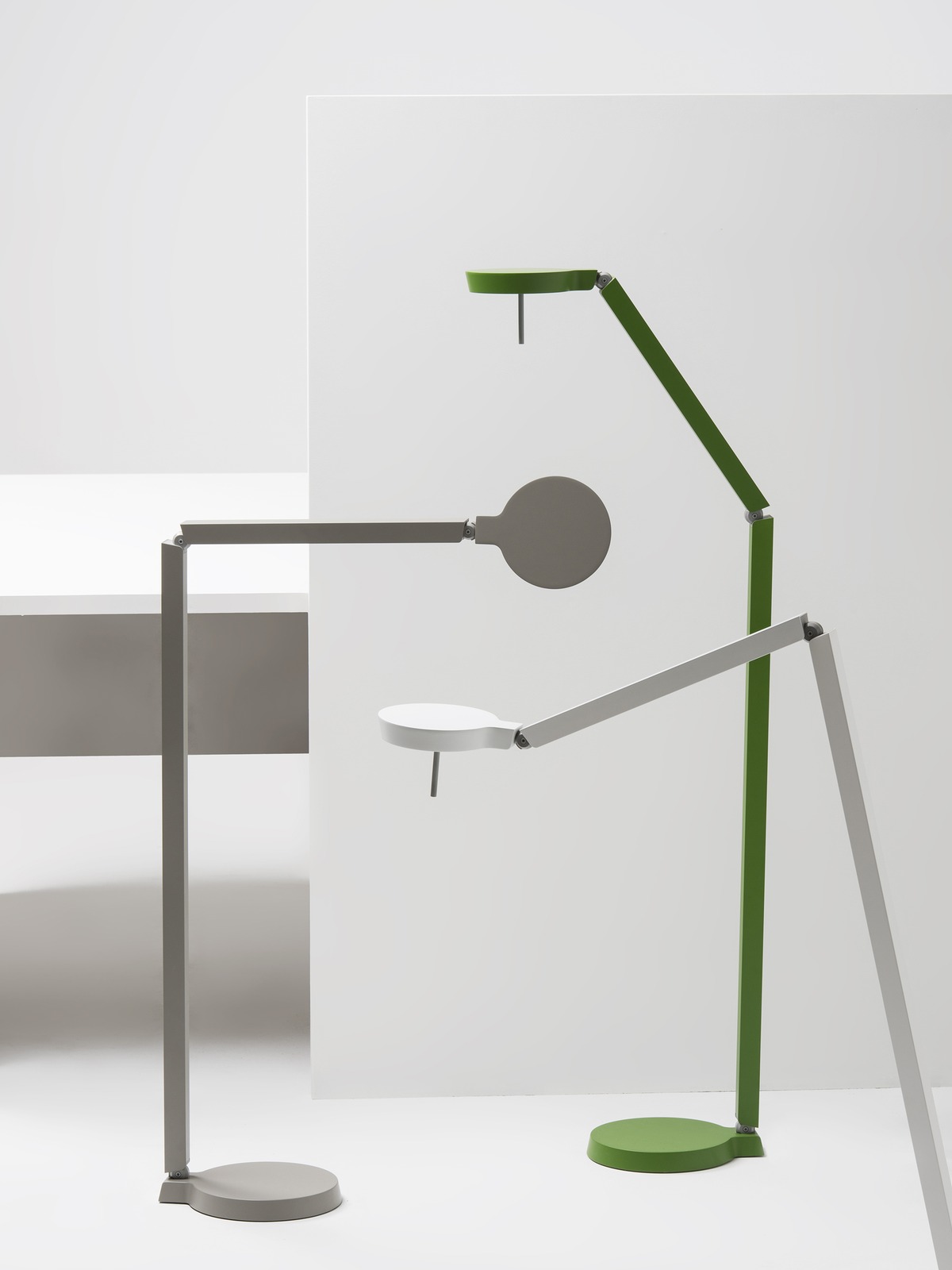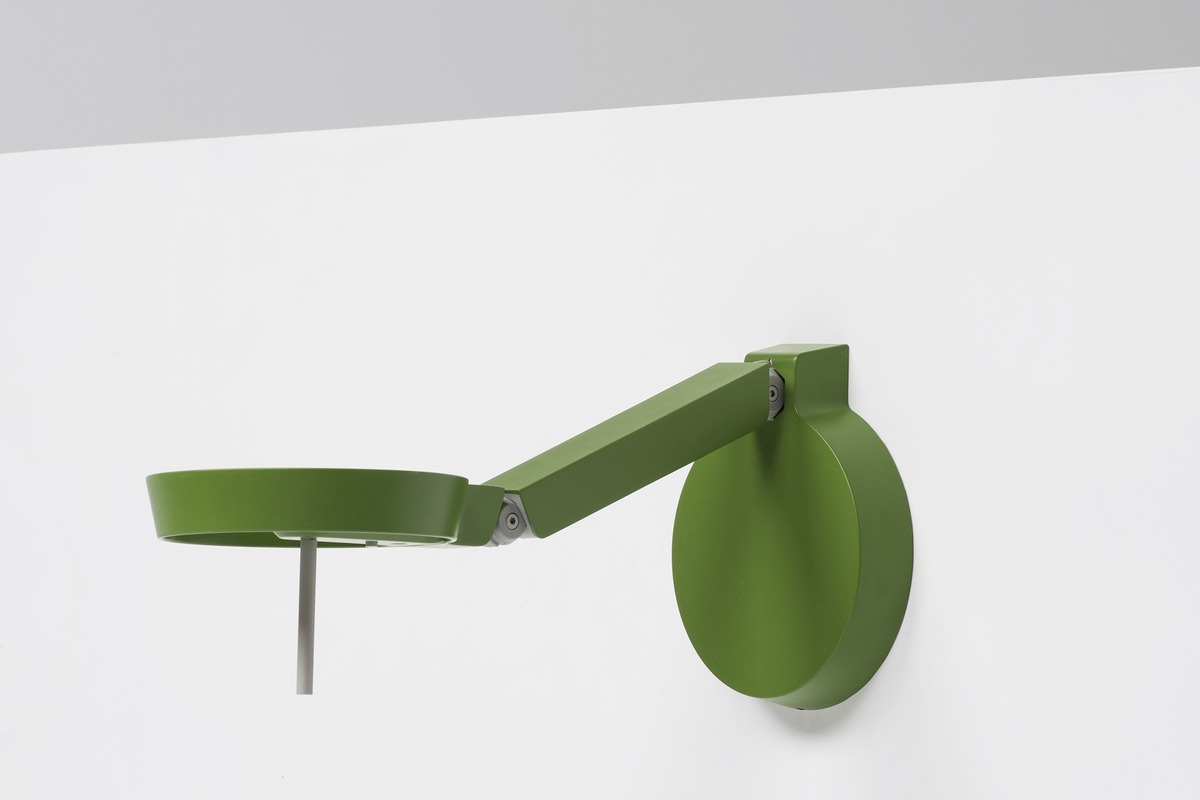 A task lamp is a highly technical object. Rotation mechanism, arm reach, counter balance, degree of efficiency, safety… It must all be there. How to use it must be self-explanatory to anyone. Hiding all the mechanics and electronics left a no-nonsense design. This lamp almost designed itself. Arm, elbow, head. And light.