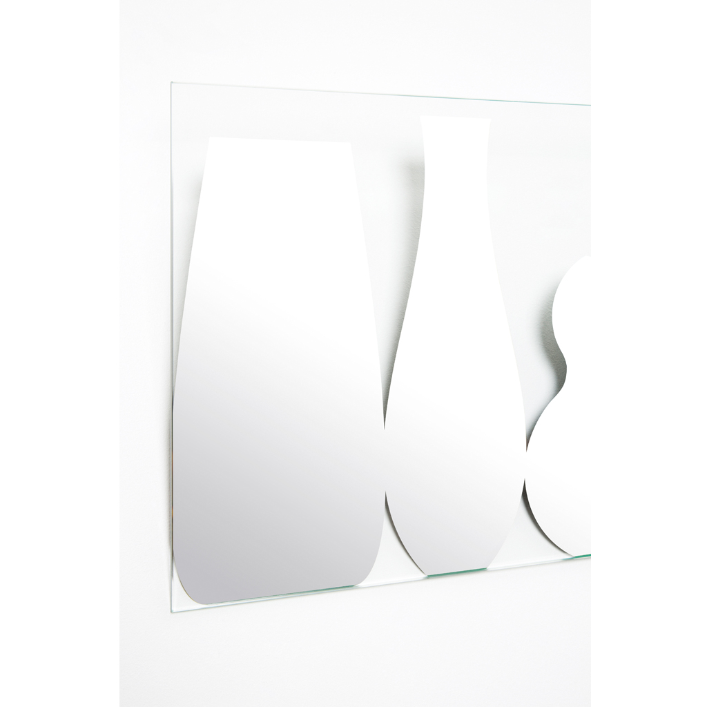 Thanks to the fact that we silver our mirrors in our own factory, Deknudt Mirrors has the ability to make mirrors with partially transparent spaces. Inspired by existing ceramic vases, our designers used this technique to present a frameless mirror with the silhouettes of these vases in mirror and leaving the rest transparent. And there is a little extra: the special thick metal suspension plates make it possible to put flowers in integrated pipettes (enclosed in the packaging) behind the vase silhouettes. In this way, the FLOWER is a regular mirror with a very special decorative effect, which makes it suitable for a Young Living range. If you need a unique and original idea for a mirror, this is it!