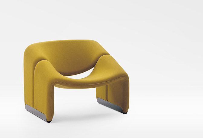 In 1973 Pierre Paulin designed the F598, the ‘groovy’ shell seat, and quickly became the darling of the trendy avant-garde. A special feature is the coated aluminum profile. Featured in the collection of the National Gallery of Victoria in Melbourne, Australia.