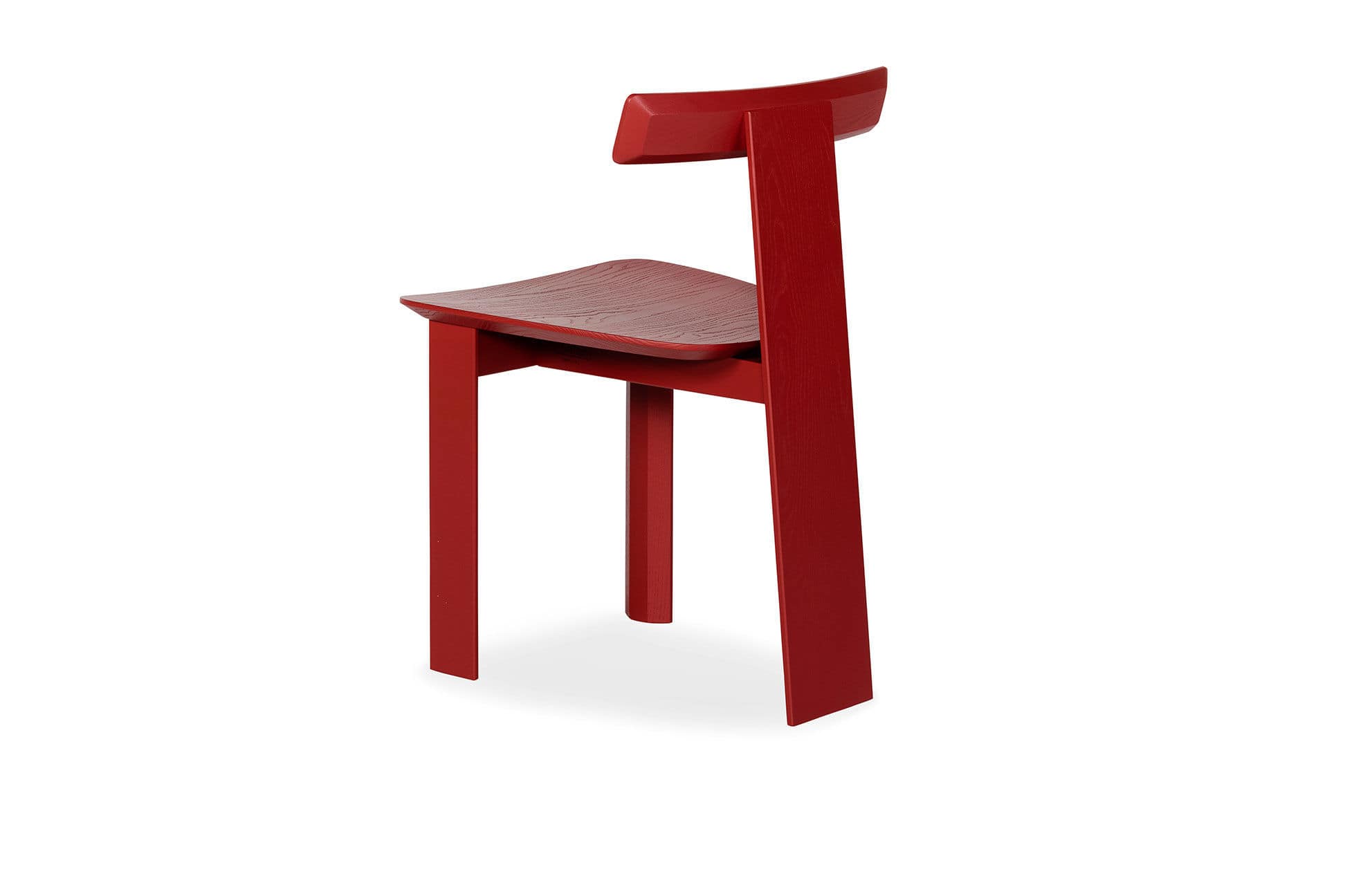 Mark is a new collaboration between LINTELOO and German designer Sebastian Herkner. Chair Mark is like a sign, a graphic silhouette. The unique design is based on the use of solid wood and strong shapes. The plank-like back gives the chair a distinctive aura. The structure with three legs adds comfort and elegance. Starting with cardboard models and prototypes in his studio in Offenbach, you can see how Herkner works with materials to find the final shape for a piece of furniture with an eye for detail, finishings and colours. The collection also includes a family of round tables in three different diameters.