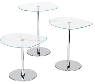 The brilliance of the chrome and the transparency of the extra clear glass ensure the Mixit table as a welcome addition to any environment. Small tables with toughened extra-clear glass top mm 10. Chromed steel tube and base.