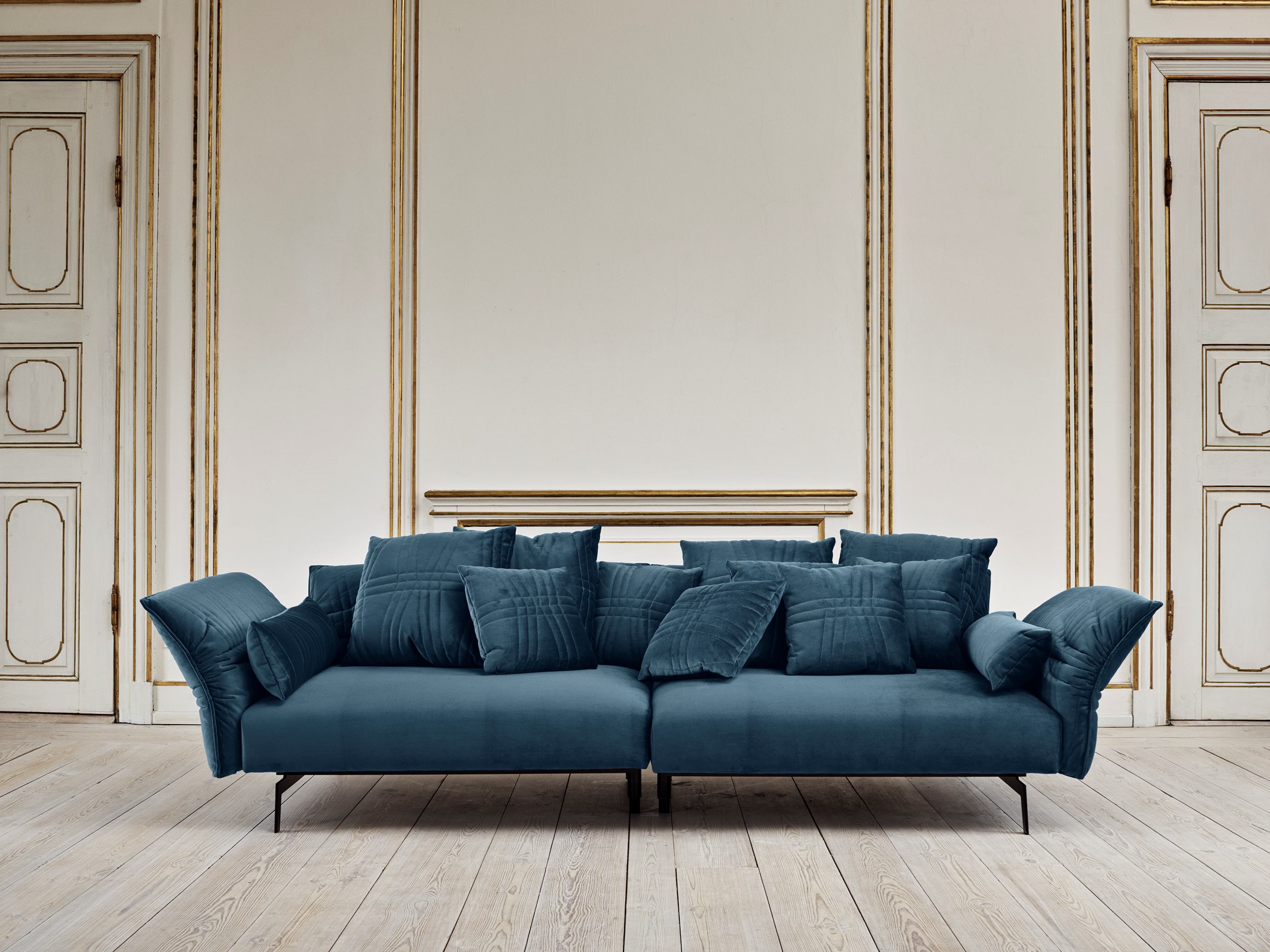 The Italian design studio PS + A, founded by the renowned designers Ludovica & Roberto Palomba, is behind the Plia range, which is a fabulous, well-designed sofa that combines adjustable features with a soft lounge-feeling. Both the backrest and armrests can be adjusted in several positions. The sofa features an abundance of great details, such as the quilted stitching, the slender legs, the many extra pillows and its curved, slightly extravagant outline.