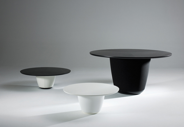 Figuratively speaking only, Presso is a table that you just can’t get yourself around. Designed by Patrick Norguet, its central conical plastic column supports an elegant round table top. This eye-catching smooth column provides a beautiful contrast with the table top, which can be either lacquered, laminated or veneered. The table top is available with a smooth coating, laminated or veneered. A unique object that provides oceans of space at home or at work.
