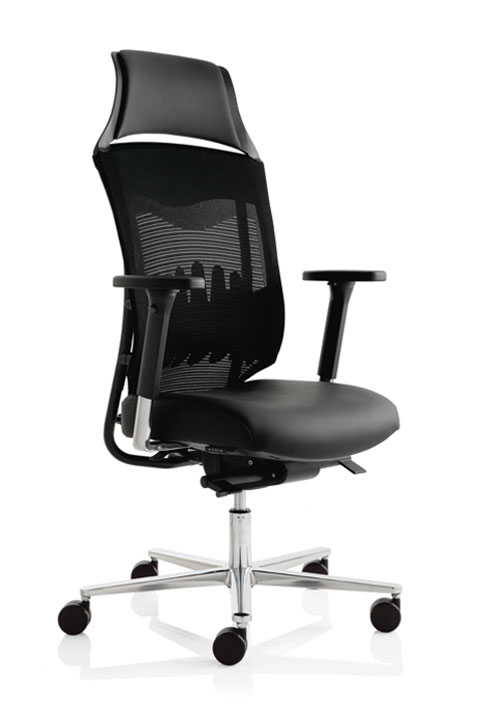 WORK is a hi-tech comfortable chair that has various synchronized devices so that it accompanies the body movements of its user.The back is upholstered in black or grey or entirely upholstered. Armrests are fixed or can be adjusted in height, width and depth. 5-spoke base in polished aluminium with castors Ø 65mm, or in nylon with castors Ø 50mm, are standard supplied for fitted carpets or linoleum floors.