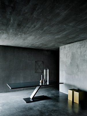 Element is a strong, poetic collection designed by sensitive, visionary, Japanese designer Tokujin Yoshioka. The heart of the Element project lies in the single central support for the table, a metal parallelepiped that is reminiscent in its form of the minerals and quartzes found in nture, positioned at a slant, teetering between the base and the top as through almost challenging the laws of gravity, magically suspended between earth and sky. A project that is particularly complex from the engineering perspective., in which all Desalto's skill and experience in the working of metals are expressed.