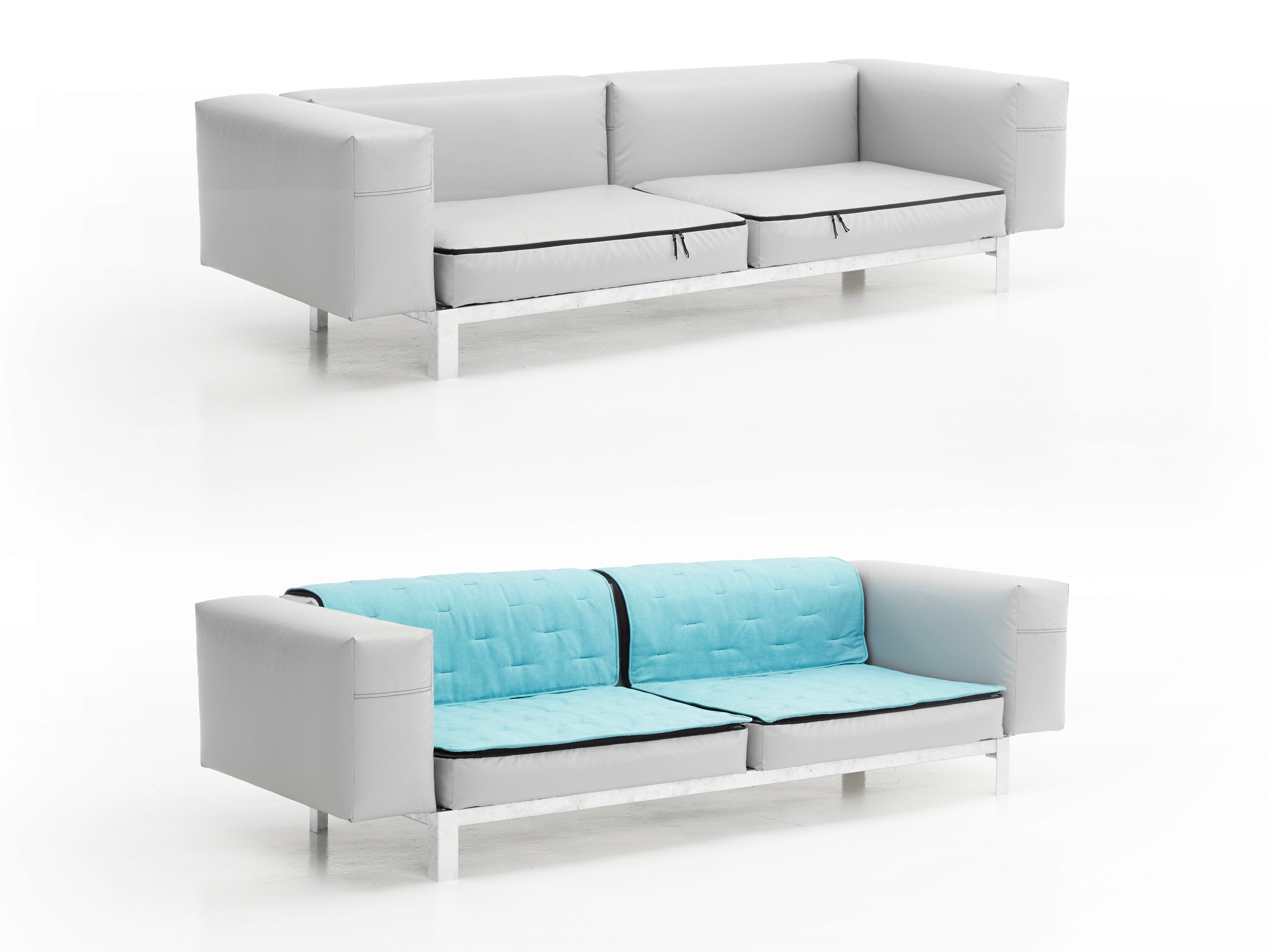 Extremis has turned the idea of outdoor seating completely inside out, by using a super robust cover material to make a sleek, weatherproof sofa that always looks great. An ingenious storage pouch in the back of the Walrus hides a foldout blanket and a thick cushion to provide the softness, comfort and touch that feel best in contact with your body.