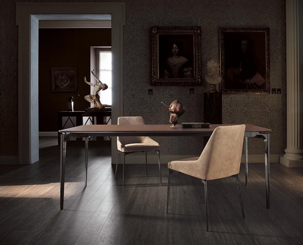 The enveloping shape of the seatback is designed to guarantee maximum comfort and support. ANNIKA is a model with a minimalist style, like the entire Home Project collection designed by Giuseppe Bavuso. The clean lines and stylish elegance of the seat make it the ideal piece to complete the range of furnishings offered for an "ALIVAR home". ANNIKA's base structure, in lacquered or chrome cast aluminium or black nickel, combines the solidity of the material with the lightness of the lines. The seat and back are in steel covered in flexible cold-pressed polyurethane foam, class 1M, with a polyester fibre lining. The upholstery can be in leather or fabric with a wide range of textures. The seat cushion is made from rubber and Dacron.
