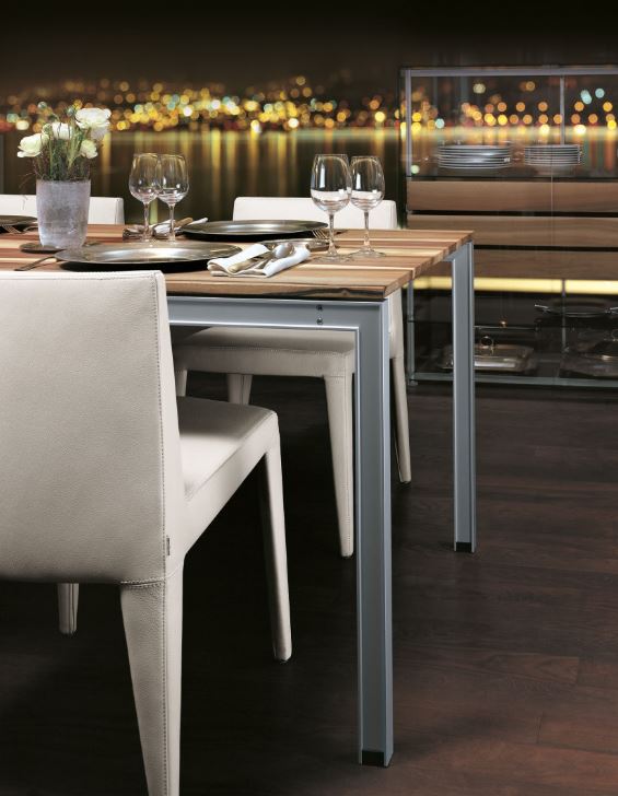 ArEs is available in various lengths. The frame base made of extruded aluminium profile can be combined with tabletops in maple or walnut, or in leather. Top available in solid maple Natural dark, maple horizontally veneered stained Natural light, solid walnut natural lacquered, solid walnut oiled white, walnut horizontally veneered natural lacquered, Base made of aluminium profiles, naturally anodised. 3 lengths (rectangular) Special measures in 10 cm interval up to 270 cm available at surcharge.