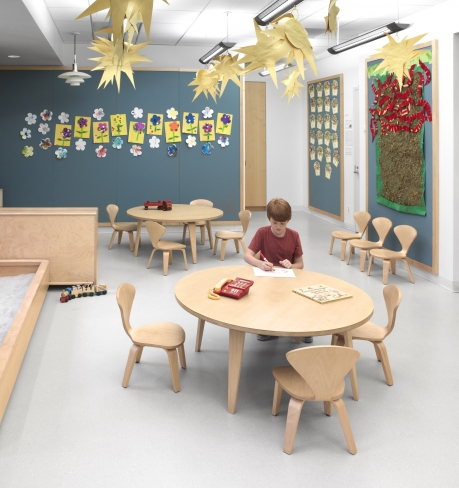 Children's classroom Chair (2007) designed by Benjamin Cherner. A molded plywood children’s chair made with the same attention to detail as the adult classic, but with a unique shape and proportion for children. Durable and beautiful for home or school. Available in a 12” or 15”seat height. In clear Birch, clear Walnut or 'Stella Orange' finishes.