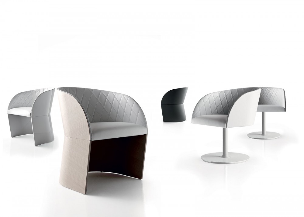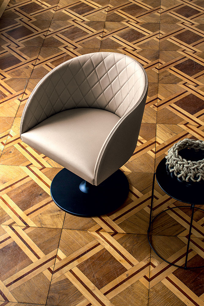 HUG was conceived as a soft embracing, a comfortable seat that is made unique by the refinedquilted back and the perfect combination between elegant design and wide and enveloping shapes that invite you to relax. Available with rear shell in beech plywood or fully upholstered in soft leather or fabric, HUG offers several versions: with curved wooden base, upholstered or stained , wooden legs or central column satin finished or painted. The choice of materials, leathers, fabrics, and the combination between them, enhance the shape of the chair giving it sobriety and sophistication. HUG can be easily placed next to different types of tables and adaptable to modern homes, but it’s also perfect for a contract use, such as waiting rooms, reading rooms, hotel lounges and restaurants.