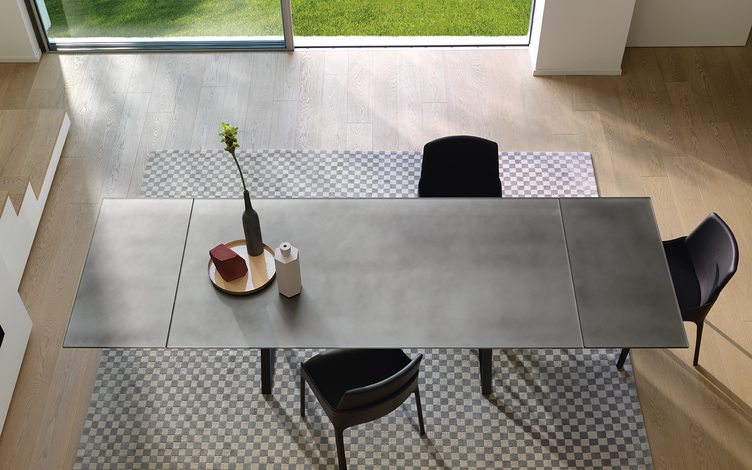 Table with metal painted base, “Lava Grey” finish. Top available in 12
