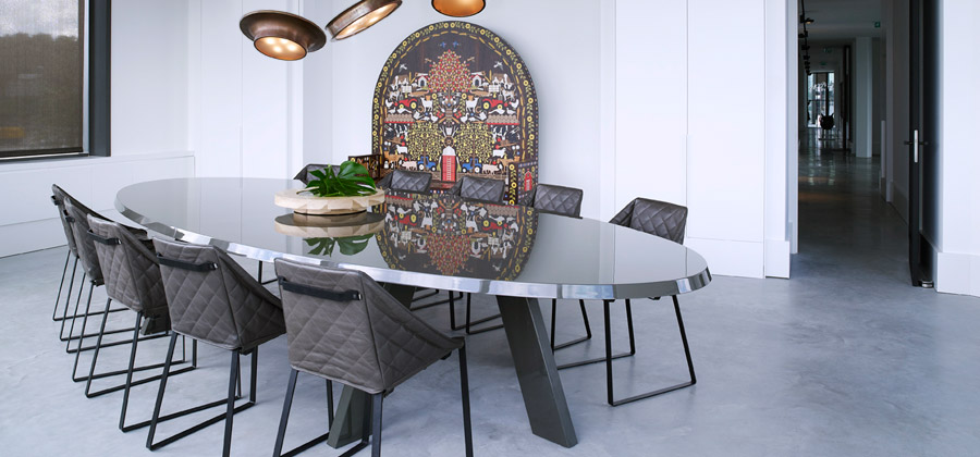 The IDS dining table is inspired by the starting position of a speed skater. Following geometrical lines, the table-top sides are slanted and angled to match the leg positions. Oval, square, round or rectangle, here is a table ideal for creating intimate dining memories.