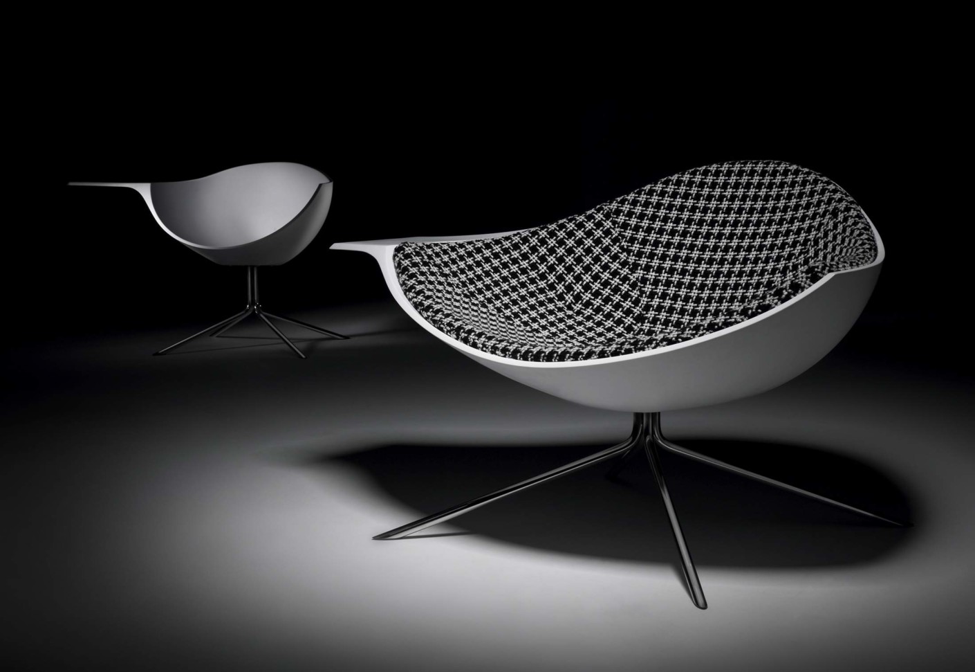Sleek, smooth and functional is an apt description of René Holten’s Low Lotus. Made from Cristalplant, a composite material that’s snowwhite, a hard as marble, soft to the touch and easy to clean. The design of the Low Lotus stretches the frontiers of this material to its limits. The way in which the moulded tablet flows into the shell is only possible with this sort of composite material. The central stainless steel base with its four slim legs emphasises the sloping shape of the shell.