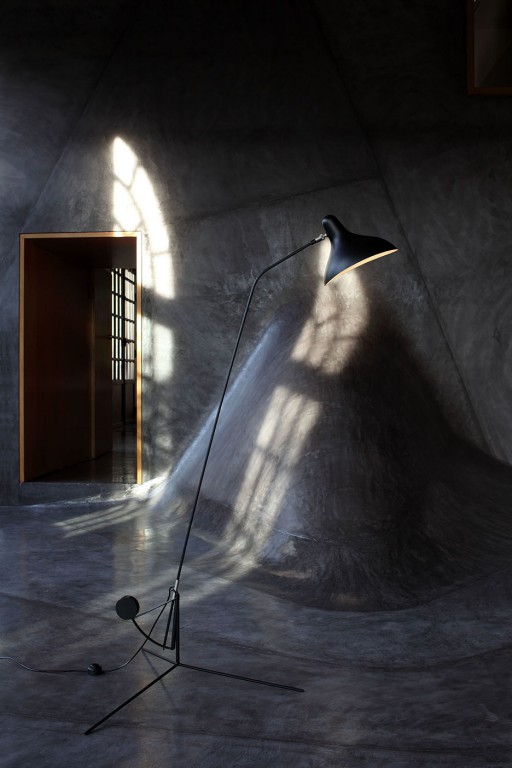 as admirer of Alexander Calder, in 1951 Schottlander created the MANTIS series of lamps. Movement is intrinsic to all of Schottlander’s work : an artist, an engineer and in no small measure a handyman, he devised a clever system of counterweights combined with a series of strong and flexible metal bars. The shade also is unique of its kind.Like an acrobat suspended in midair, it is made from aluminium using spinning and chasing techniques that are a part of the metalworker’s inventory of skills, but to which he has brought his sculptor’s eye to create a helical movement.