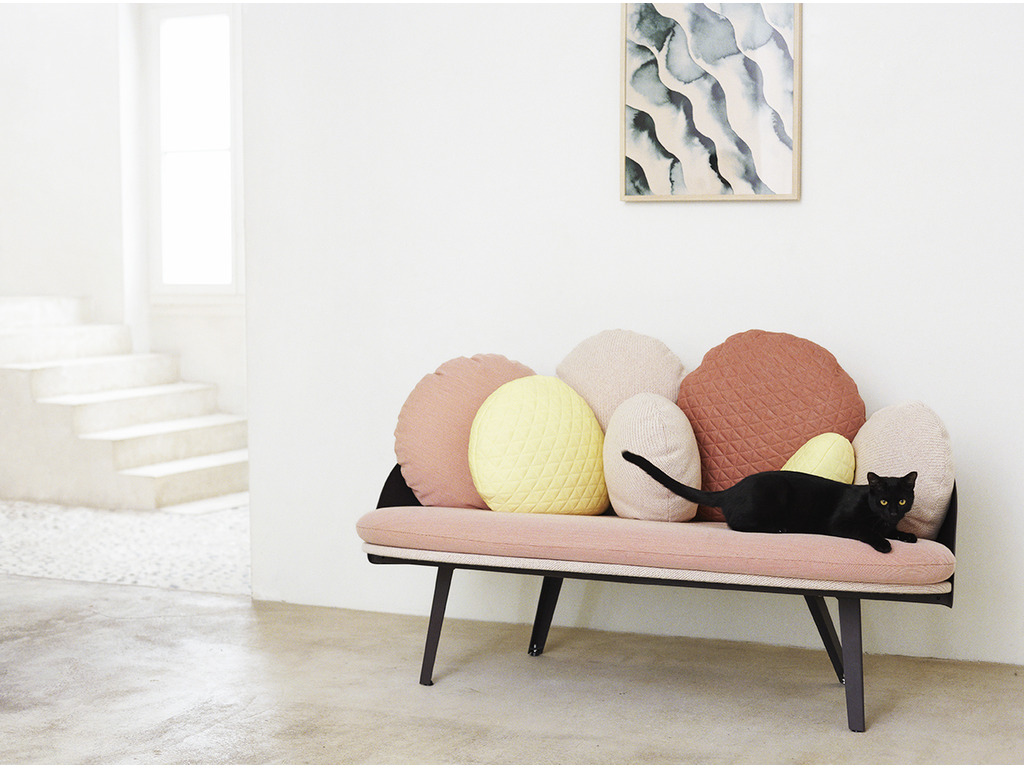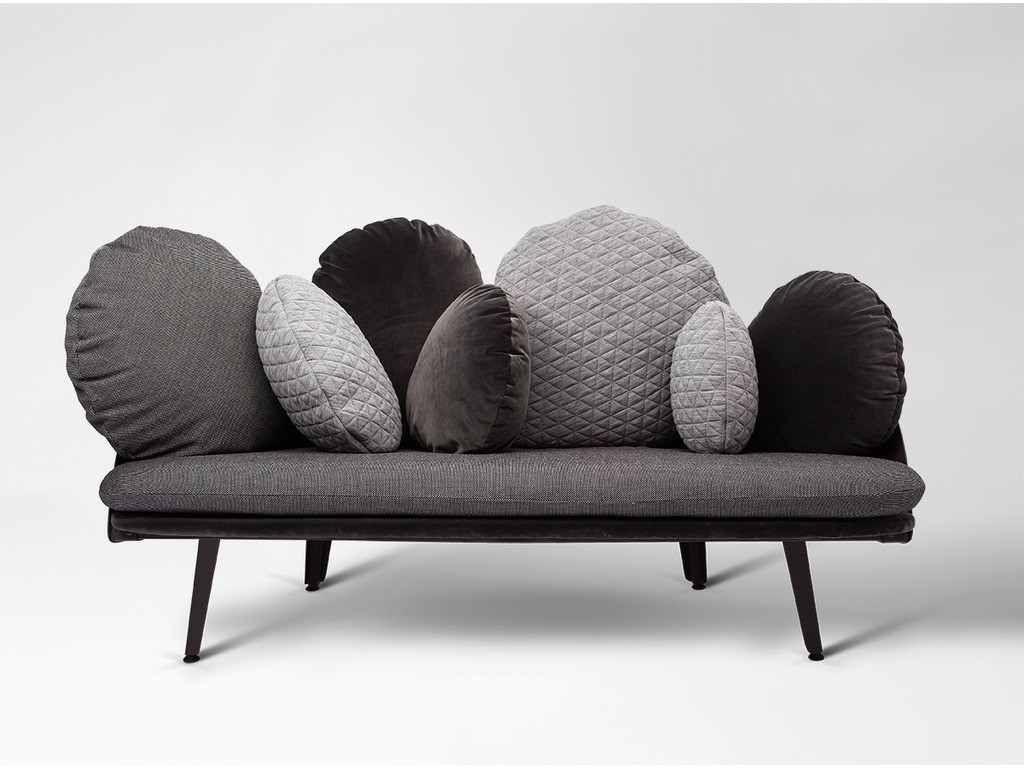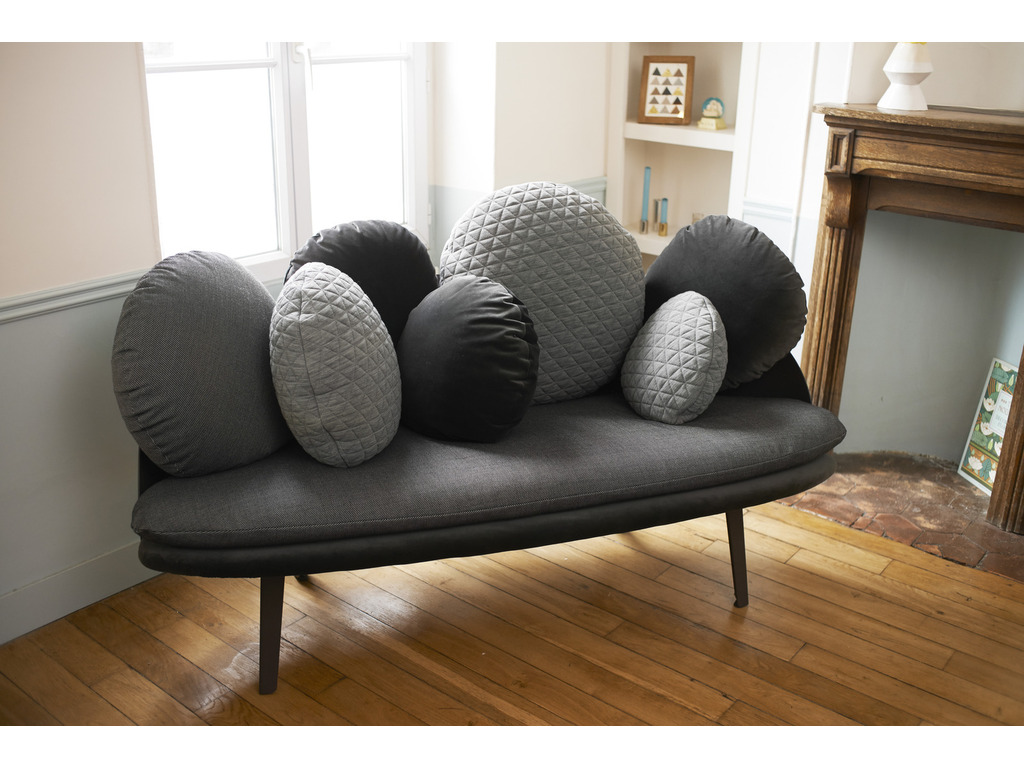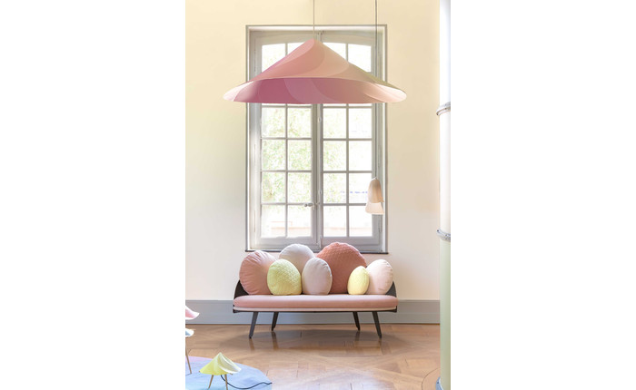 Designed by Constance Guisset, NUBILO is a sofa and armchair serie in which the multiplication of cushions evokes the image of a cloud. Softness, comfort, velvet, are accentuated by the association of three high quality materials. The cushions vary in their size and form and ask to be played with. Attached to the sofa structure by elastics and pressure they can be moved and repositioned...