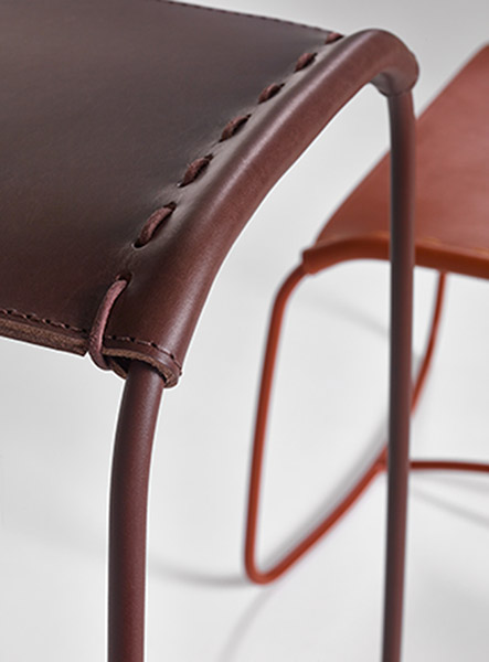 A family of comfortable stools for flexible use, ideal for our healthier, mobile lives. Hand-stitched leather saddles over a simple wire frame, made for friendly, helpful companions to any occasional seated situation.
