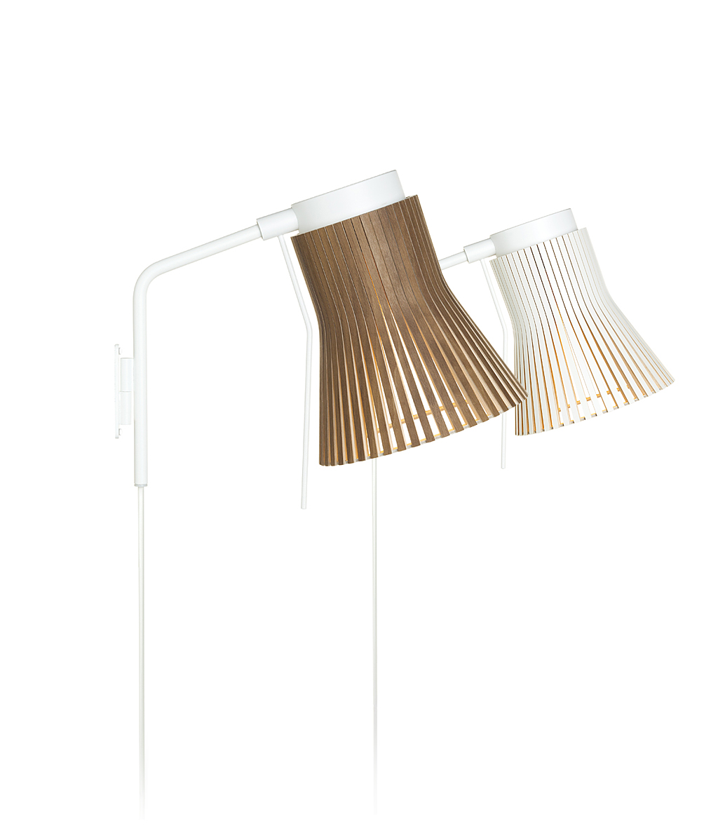 Adjustable wall light that turns from side to side. The shade can be pointed which makes the Petite wall light a perfect companion for instance by the bed! Available in all four finishes.