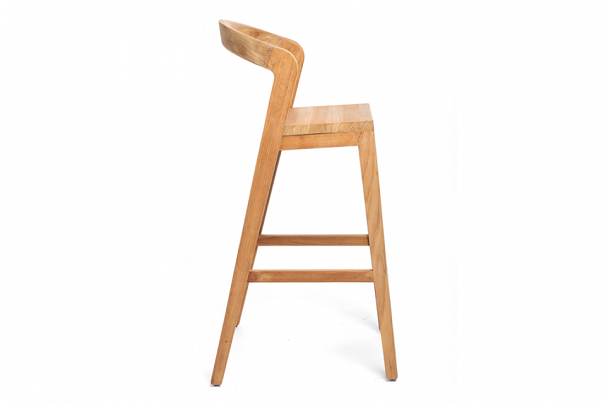 Sustainable, comfortable bar stool. Thanks to its sexy and elegant design this barstool can decorate each kitchen table. The rounded backside operates perfectly as arm rest. The feetrest comes with stainless steel cover.