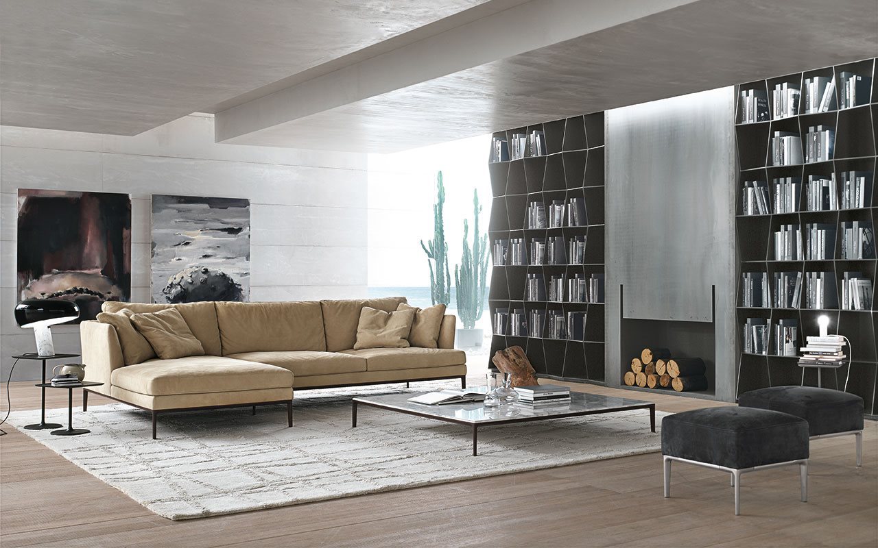 Slender, light forms, sinuous, yet essential: this is the look of Portofino sofa designed by Giuseppe Bavuso.The broad seats guarantee optimum comfort. It is a furnishing solution that may be easily inserted into various areas of the home to create its characteristic minimalistic style. Portofino has a wooden frame covered in polyurethane and Dacron, cushions in polyurethane rubber and Dacron while the back and arms are made from soft down. The frame of the base is made from aluminium profile while the feet are in die-cast aluminium, polished or painted.