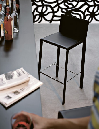 This leather stool embraces the minimalistic design mirrored by the equally clean cut slim chairs from the same range. Available in classic black only, the metal frame is fully covered in leather with a chromed metal footrest. Sleek, linear edges give this leather stool its slender yet strong appeal. The seat and low back are squared, giving the product a balance and sense of stability that creates a commanding presence in any modern space.