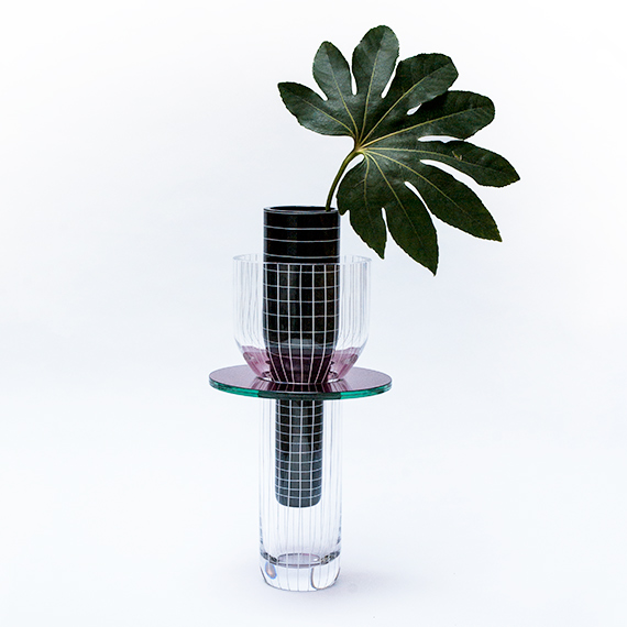 Toy is a scuptural vase. Toy is the fusion of traditional and modern techniques: blown glass, industrial flat glass, and hand painting on glass. The different elements interact, creating color combinations, distortios, patterns, and reflections on the vase. Of course, you can also use Toy as a vase. . .