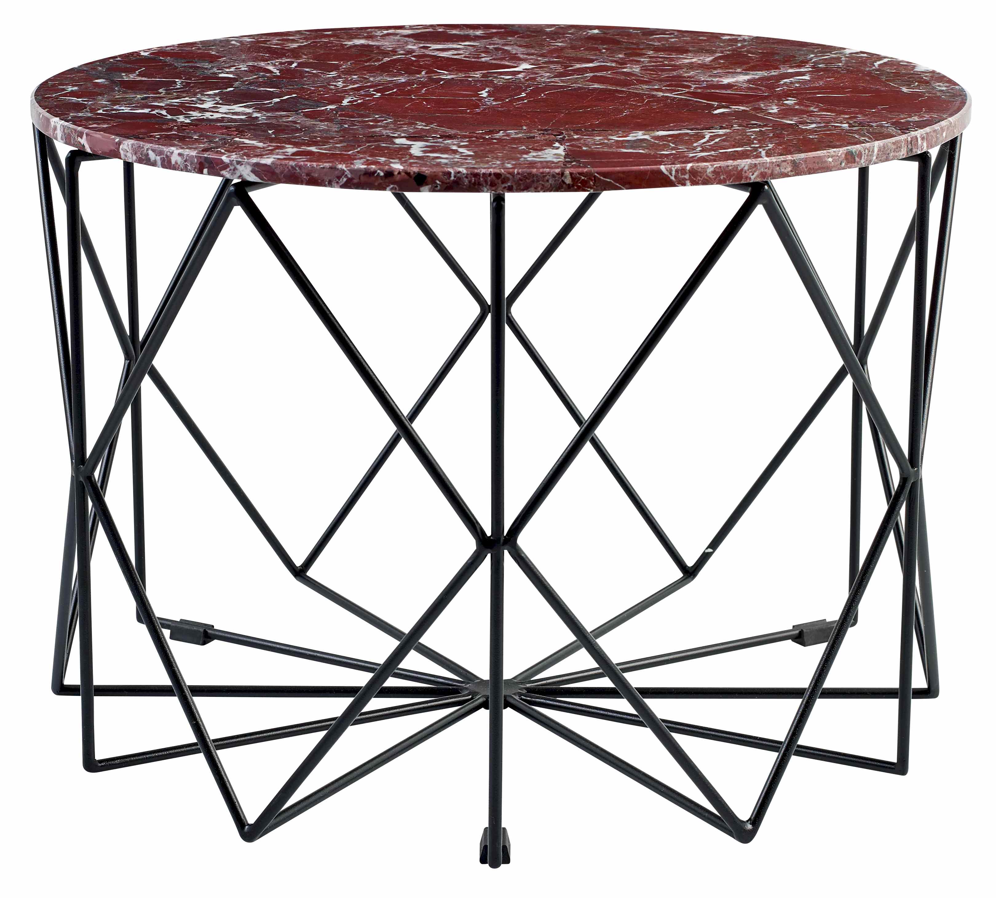 The combination of raw steel and the tabletop of coloured glass creates a raw and contemporary look that fits equally well in a minimalist Scandinavian living room or a home filled with vintage and fun details.