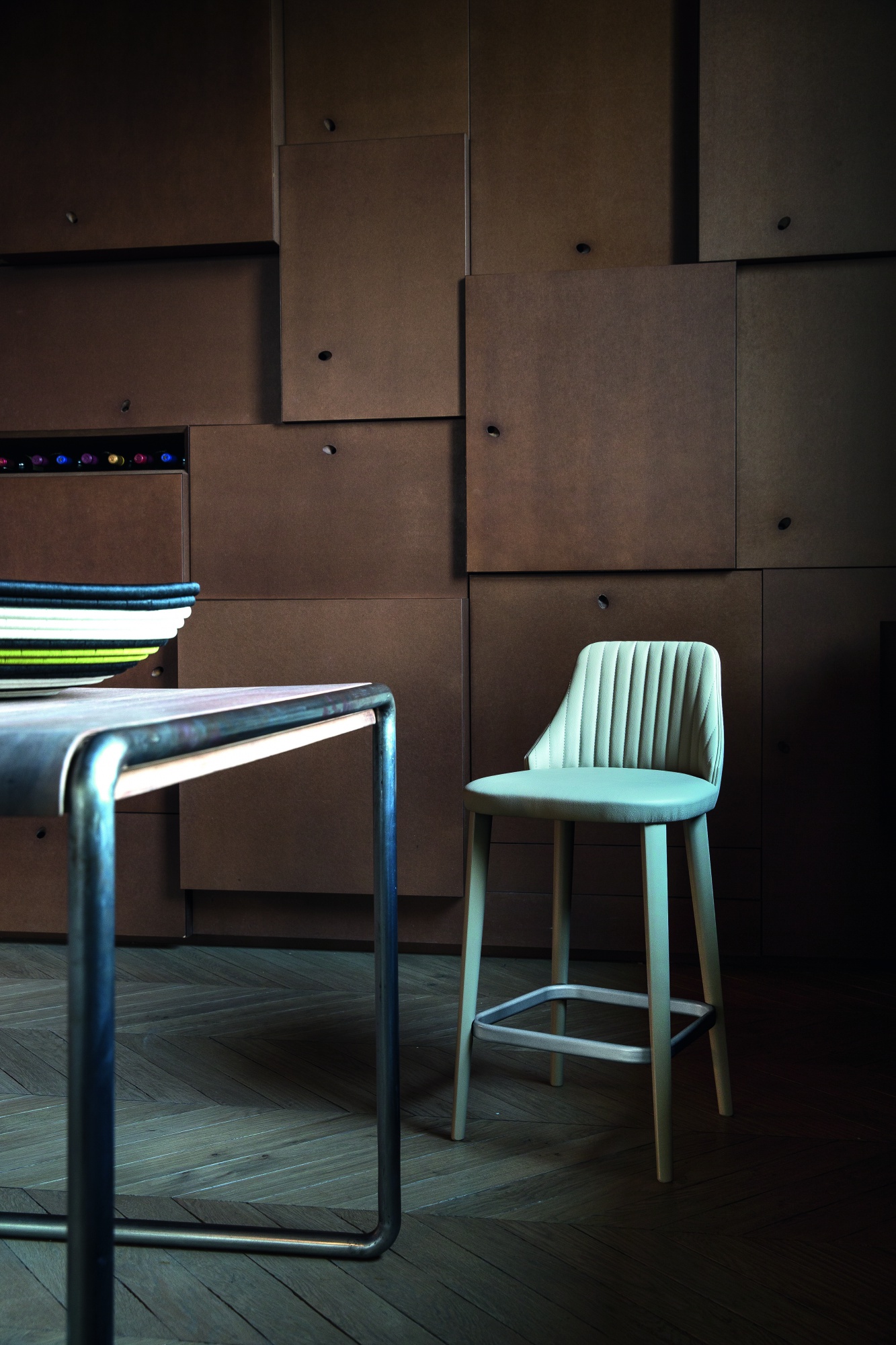 With its sinuous shapes and its distinctive character, BREAK deserves to be listed among the best-sellers of Bross. Its sophisticated design, the embracing and harmonious lines, the love for details, make BREAK a little masterpiece, which can be used for a wide range of projects, from residential to contract, for a sophisticated target with contemporary taste.The collection includes chair and armchair, with wooden or upholstered shell, available with a wide range of metal bases, or wood covered, or a central metal column.The upholstery, in high quality fabric or leather, and the thin vertical seams, create an elegant game of curves.