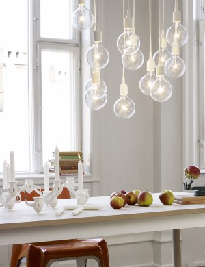 E27 has become a Muuto icon: A striking naked bulb that plays with the subtle aesthetics and simplicity of industrial design. The lamp can be used as a single light source, in pairs, rows or even in clusters to create a modern Scandinavian chandelier.