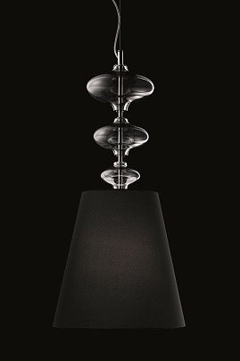 The great “hanging” ogives identify this collection made up of table, floor and hanging lamps. Black chrome for visible metal parts.
