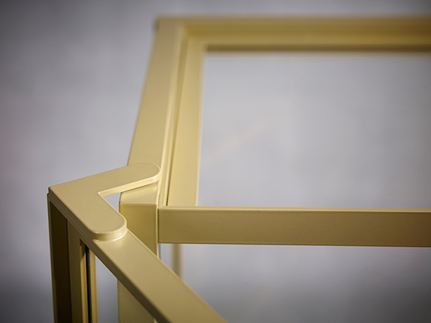 The FINN cabinet adds a sense of industrial luxury to any interior. The rough mill scale of the matt steel frame beautifully contrasts the fine lining and transparent character of the cabinet, enabling the ideal cabinet wall and display of personal and extraordinary objects.