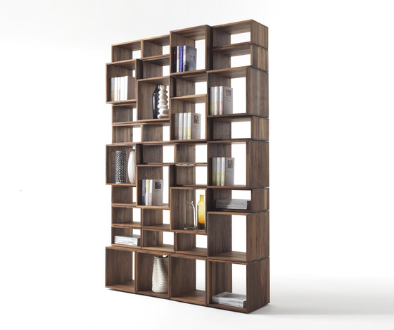FREEDOM offers a new way of freely composing your own ideal bookcase. It is available in all the types of wood in the RIVA 1920 Collection.