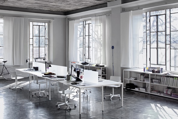 Working space. Helsinki tables are presented in the variant for office use with a highly structured organic programme. Thanks to the introduction of a new seies of accessories - holes for cables, drawers, courtesy alcoves- the tables can take on various configutrations, L- shaped or as facing islands. Perfect for working opn space offices.Or, as isolated desks, they offer a solution of clear linearity for a contemporary executive office