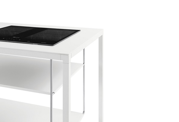 The Helsinki Kitchen-office counter, open with drawers, fitted with an induction plate, offers an informal and functional solution to enjoy the office lunch break. The Helsinki outdoor kitchen can be fitted with a grill on supports, allowing you to recreate a barbecue area in continuity with the dining table