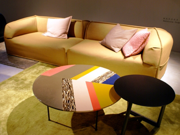 Blunt blocks rounded and smoothed by some imaginary blade. Geometric order is broken, swept away by a movement, a line which follows the contour. The different faces reveal veins formed by stitching, at times as visible as tacking, at others disappearing. The outer shape seems to be independent from the inner frame and padding. Sofa, armchair, chair: a modular system in which each component has its own independent character, both in its use and sculptural feel.Flame-resistant expanded polyurethane foam of different densities. Backrest and armrests in flame retardant polyurethane foam. Black polypropylene feet screw into the frame. The M.a.s.s.a.s. collection has removable covers.