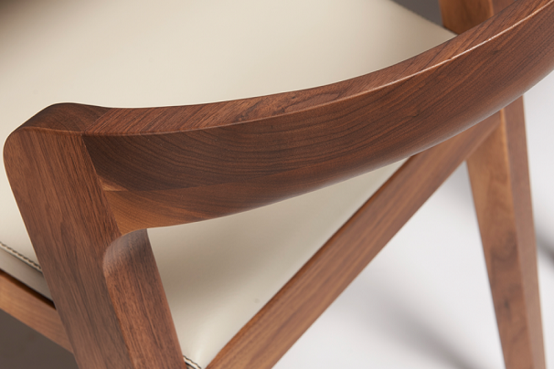 Elegant solid wooden chair with a unique contemporary design. Typical characteristics are: easy stackable, ergonomic, compact, luxurious, for residential and commercial projects.