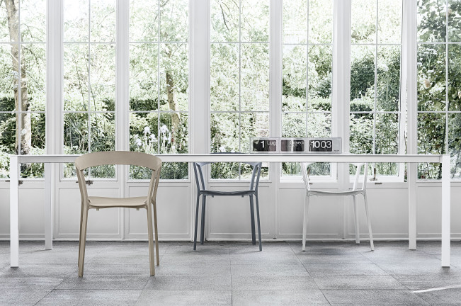 The challenge was to be able to get a table with a large extension while maintaining strength and flatness impeccable using one infinitesimal thickness. The result of the study and development with Kristalia is the presentation of a long table up to 3 meters.