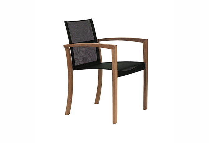 Armchair with frame in teak and seat in batyline